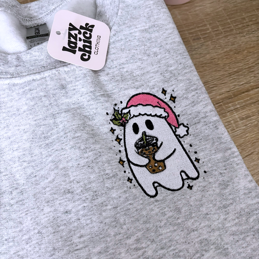 Christmas Ghost Pink Embroidered Christmas Crewneck Sweatshirt